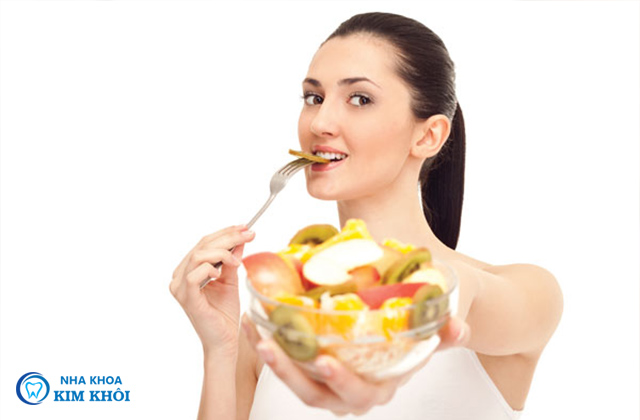 Bổ sung thêm các loại trai cây như: cà rốt, táo và một số rau quả. Thực đơn hằng ngày có tác dụng làm sạch răng và tăng cường sức khỏe cho răng lợi.