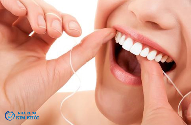 Sử dụng chỉ nha khoa hoặc tăm để loại bỏ mảng bám khoảng cách giữa các răng